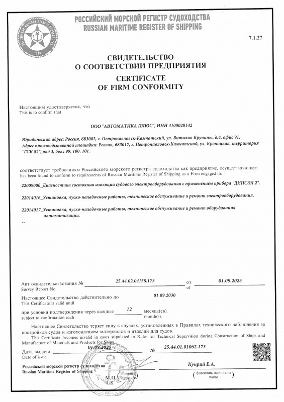 Свидетельство РМРС